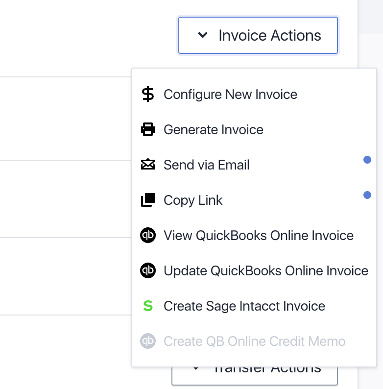 - After the Invoice has been created, you can now navigate to Invoice Actions > View "QBO Company Name" Invoice to view the Invoice.