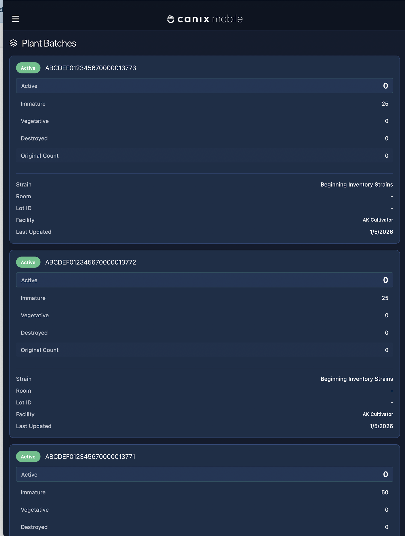 Click on "Plant Batches" to see all of the Active Plant Batches in your facility.