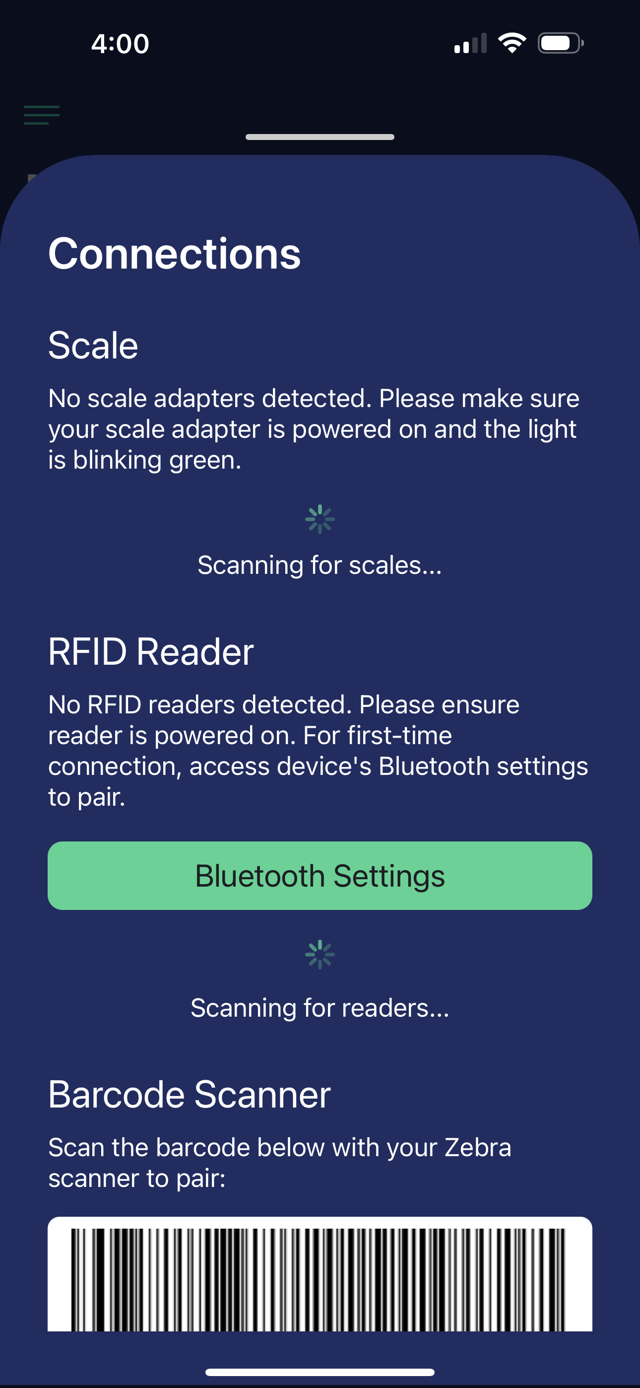 You will be able to connect your Scale, RFID Reader, and barcode scanner.