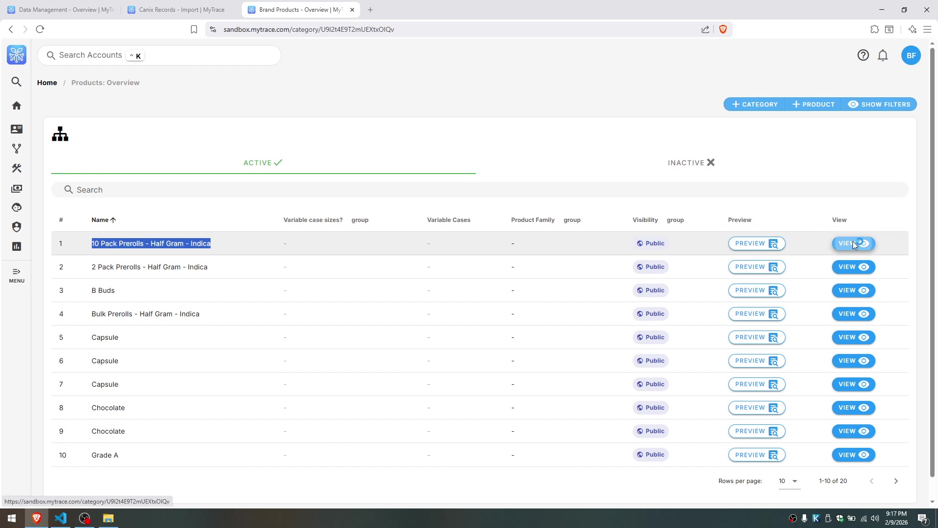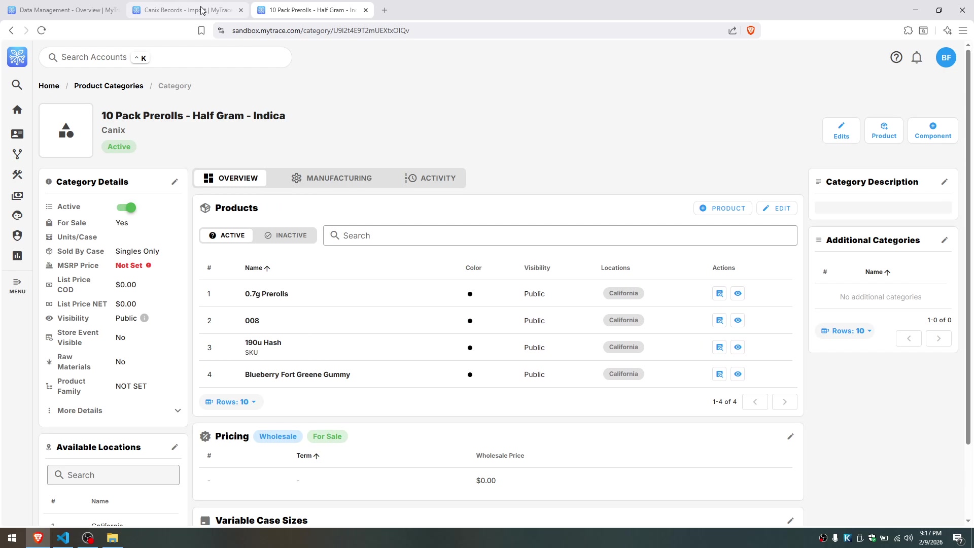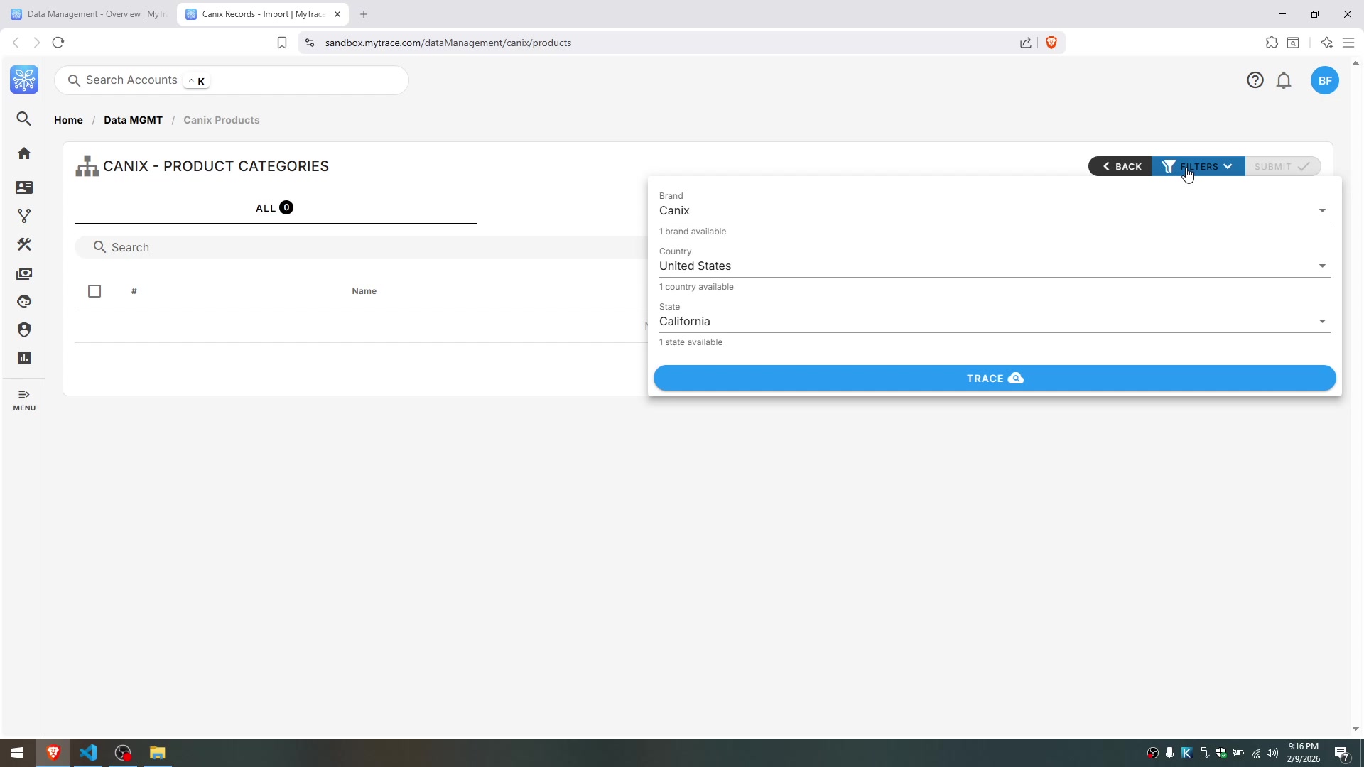 - Category mapping is required. Every new product imported from Canix must be mapped to a MyTrace product category before it can be submitted.