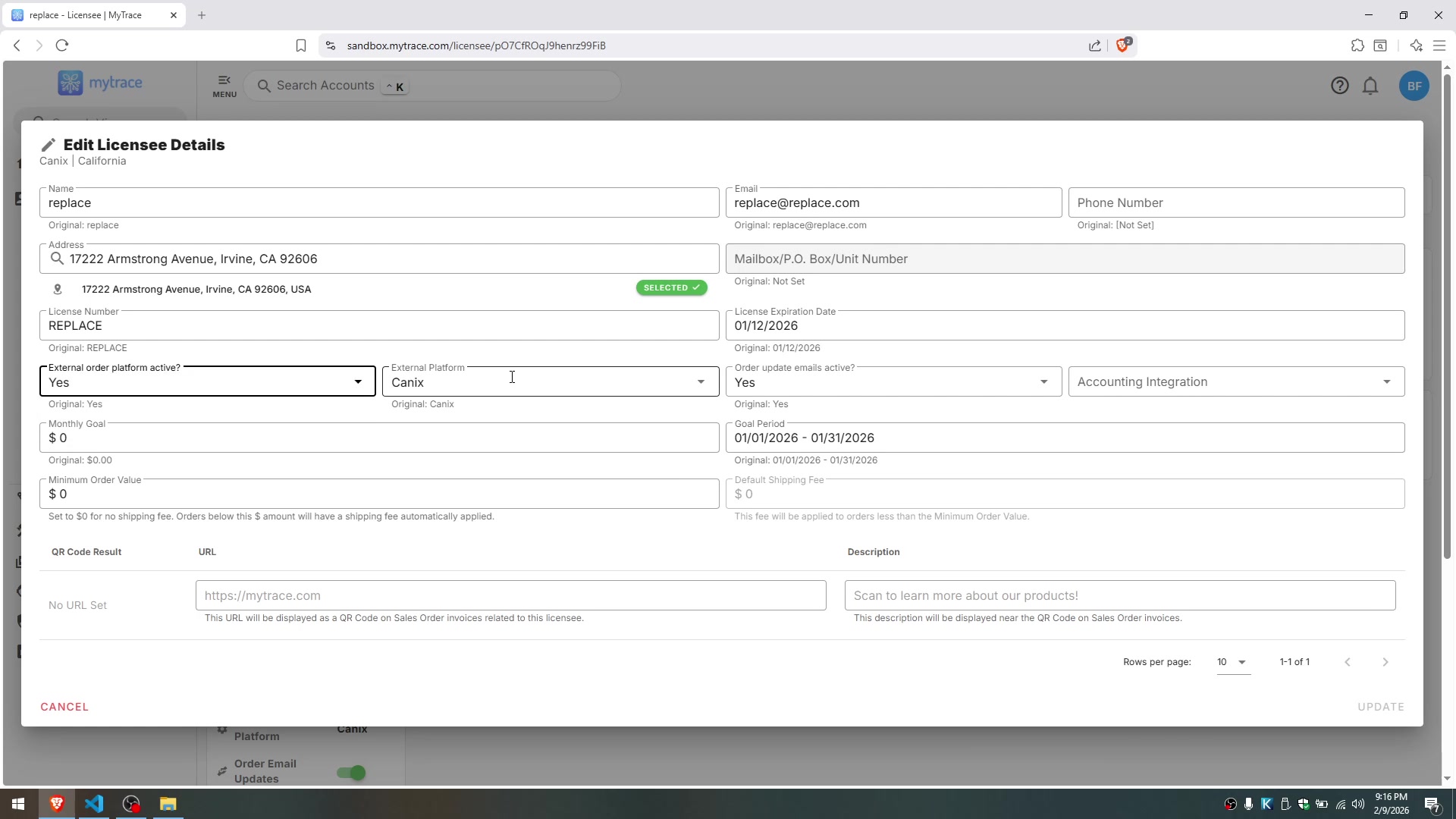 - Keep licenses current. Ensure your licensee's license number and expiration date are up to date in both Canix and MyTrace for smooth syncing.