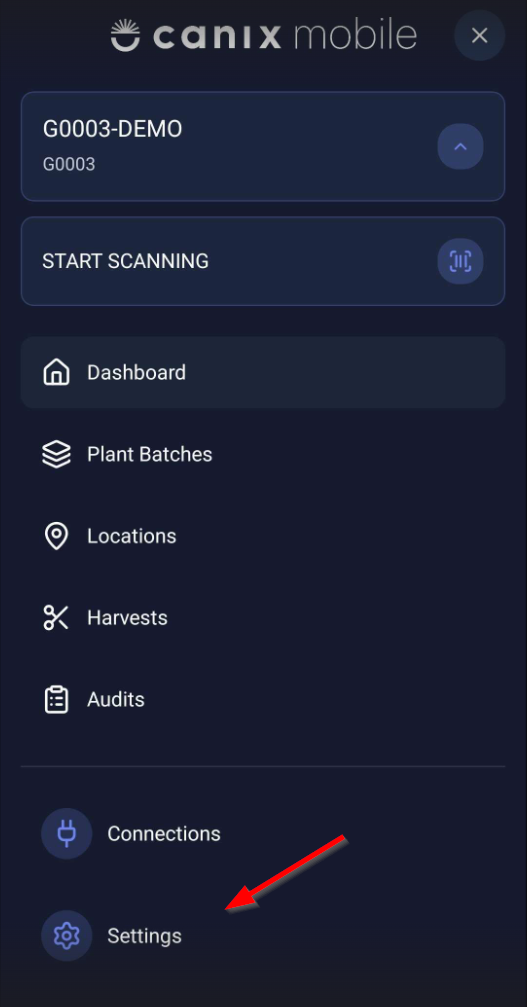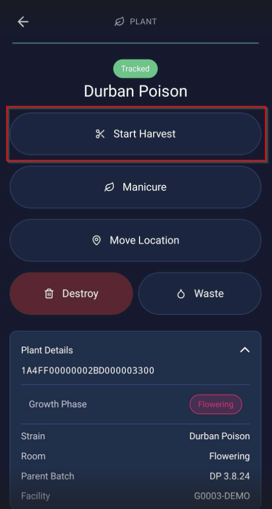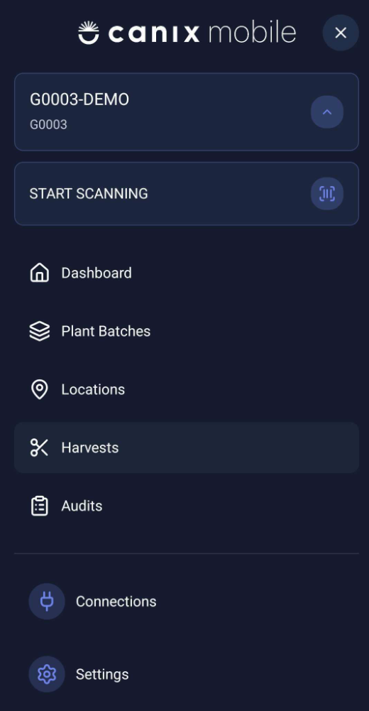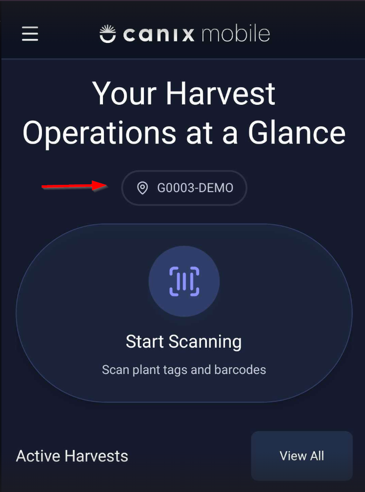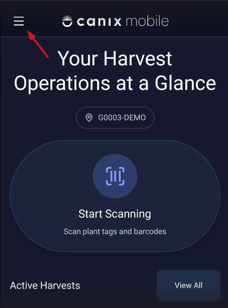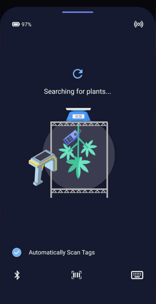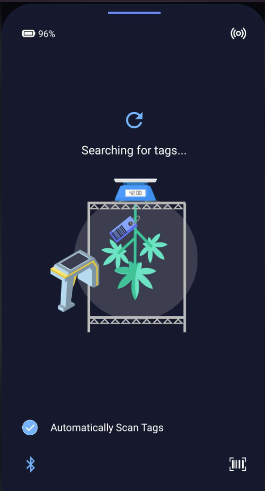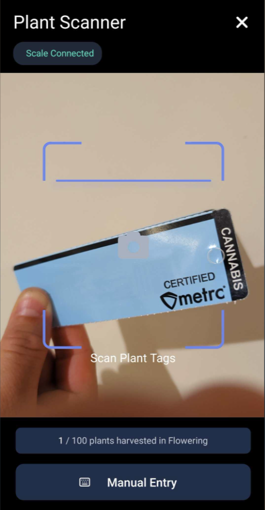 From the Dashboard, scan your first plant tag to pre-populate harvest information
