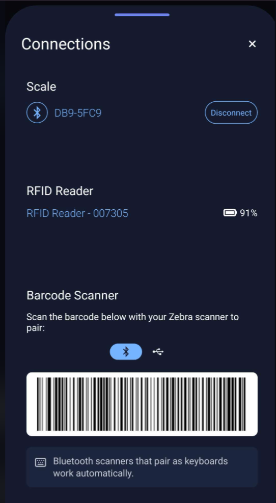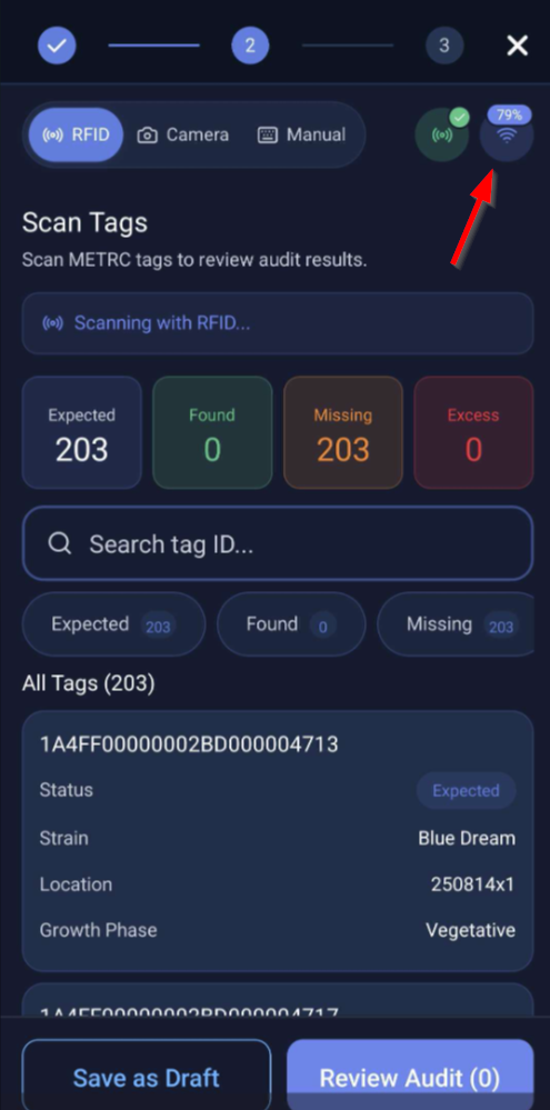 Begin scanning tags in the audit location. You can toggle between scanning methods or add accessory hardware to connect as needed