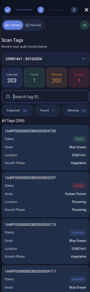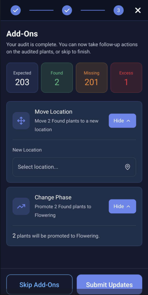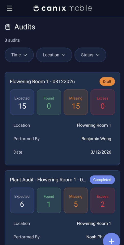 Auditing in the Canix app allows you to scan a location for plant tags and take follow up actions on those plants.