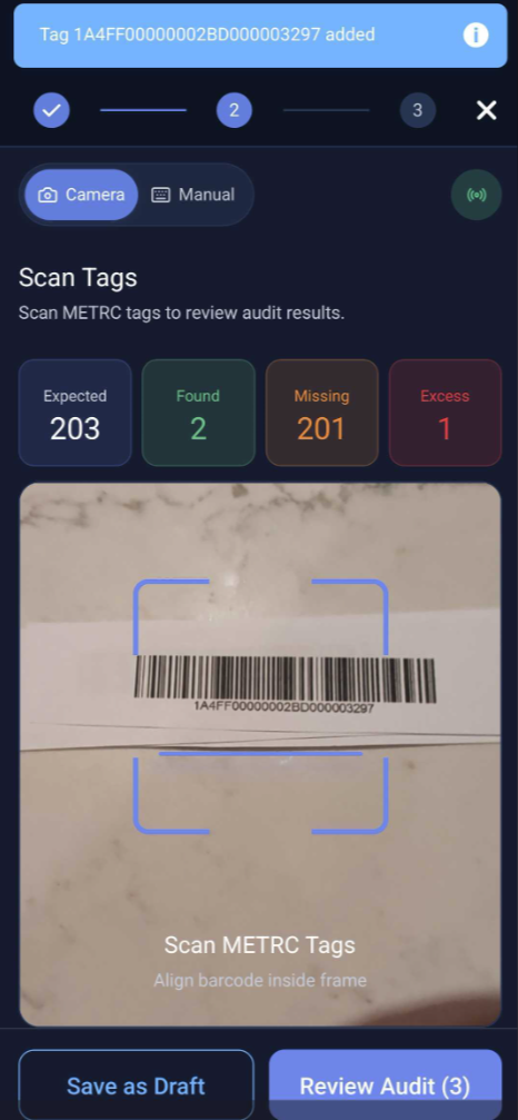 - Missing - This is the number of remaining tags that have not yet been found during the audit